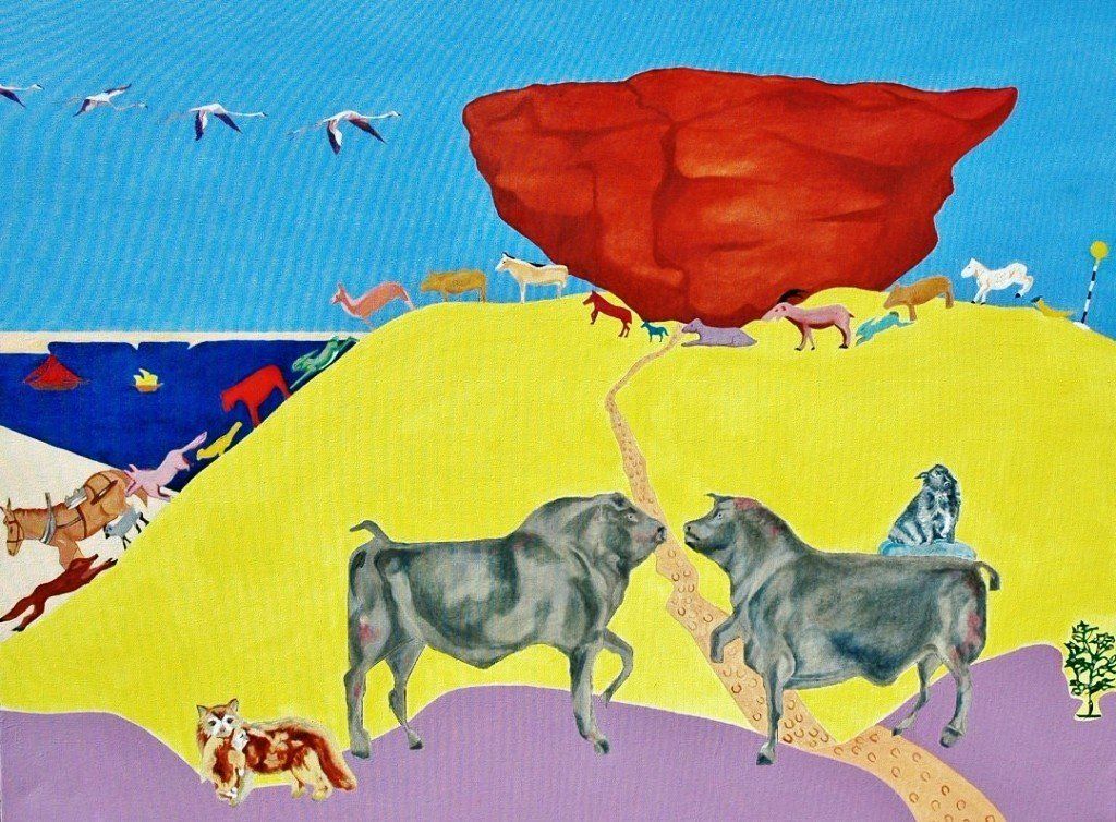 A series of paintings based on childhood memories of Studland and the Isle of Purbeck. Many feature animals from Lucy's Grandfather's collection of toys some of which are broken through use over the years. The missing parts can often be seen in the painting of individual animals.